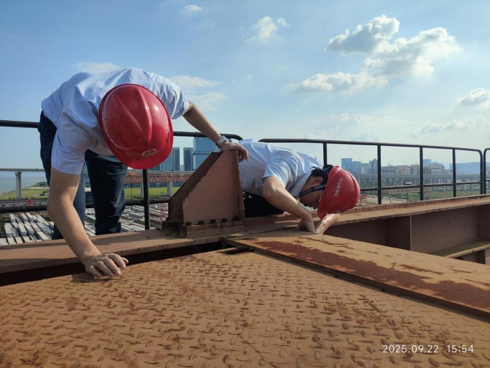 此次安全评估设备作为工程建设关键装备,跨度超60米、起升高度达30余米,其安全运行直接关系到项目施工安全与进度。中山检测院针对设备特性组建专项技术团队,通过设备本体检测、应力测试、无损检测(含超声波探伤、磁粉检测)及高强度螺栓扭矩系数检测等核心项目,全面评估设备安全状态,为大型特种设备安全运行提供专业技术支撑。